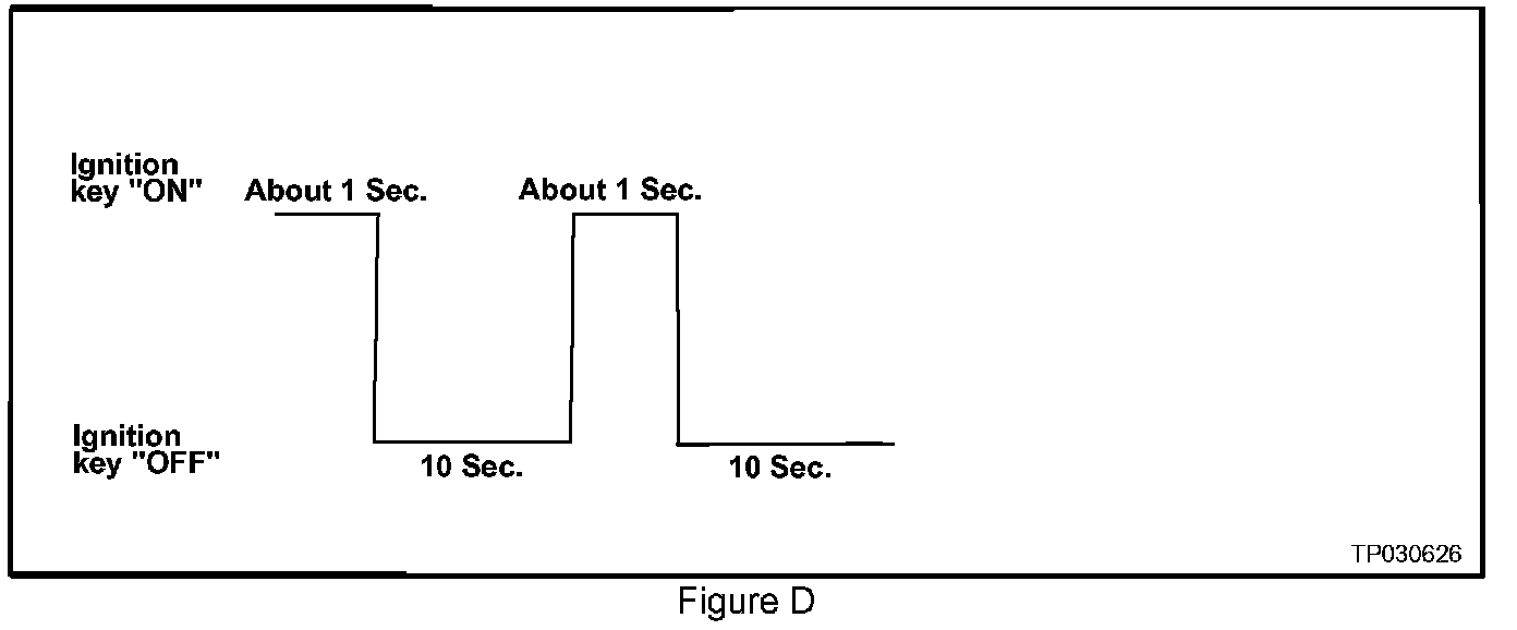 b. Turn the ignition switch "OFF" again for 10 seconds (see Figure D). This will reset ECM "self learned" Data.