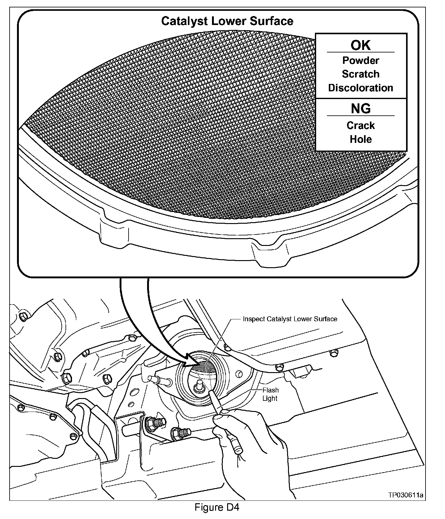 5. Inspect the entire catalyst lower surface condition as shown in Figure D4.