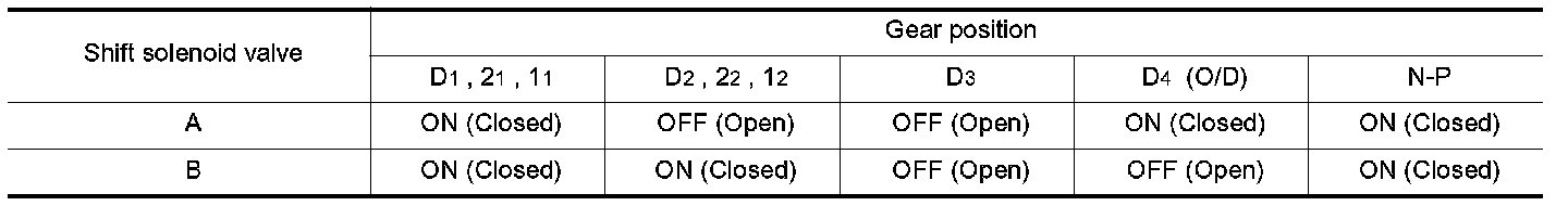 The torque converter clutch piston in the torque converter is locked to eliminate torque converter slip to increase power transmission efficiency. The solenoid valve is controlled by an ON-OFF duty signal sent from the TCM. The signal is converted to an oil pressure signal which controls the lock-up piston.