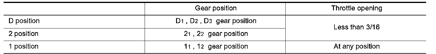 When vehicle is driven in 4th gear position, vehicle speed and throttle opening are detected. If the detected values fall within the lock-up zone memorized in the TCM, lock-up occurs.