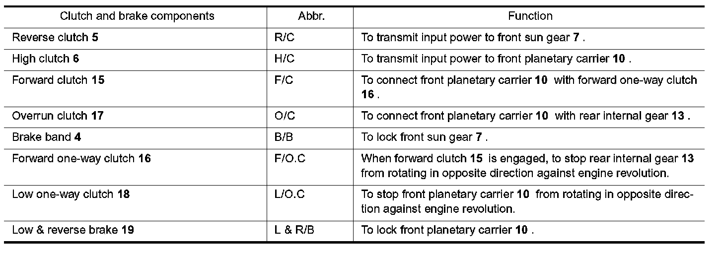 - Forward one-way clutch Rear internal gear is locked to rotate counterclockwise because of the functioning of these three clutches.