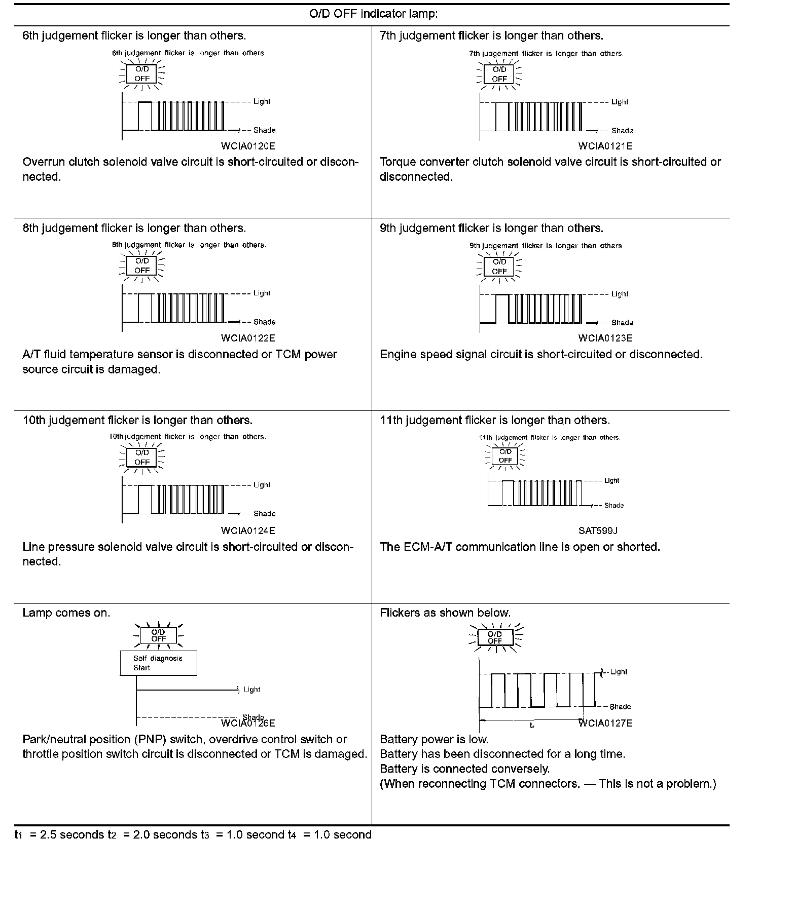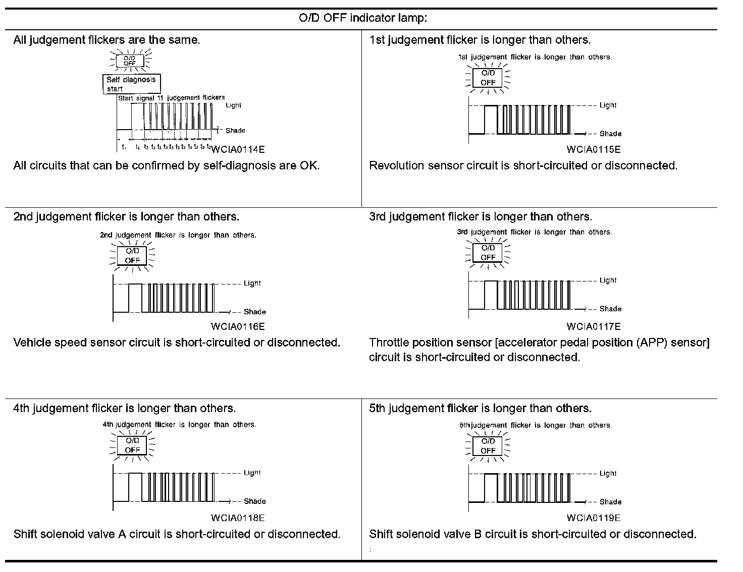 5. Does O/D OFF indicator lamp come on for about 2 seconds?