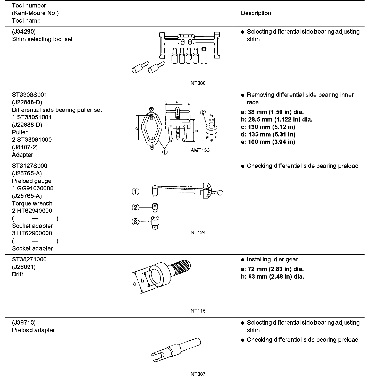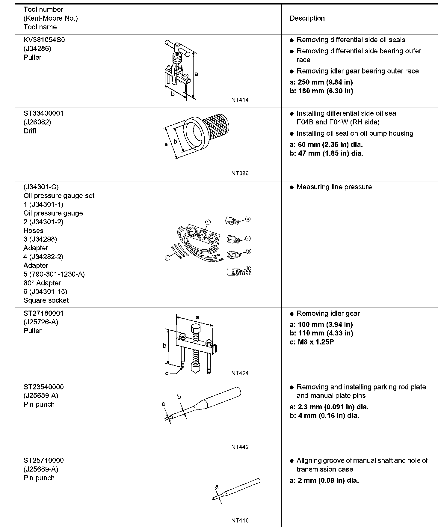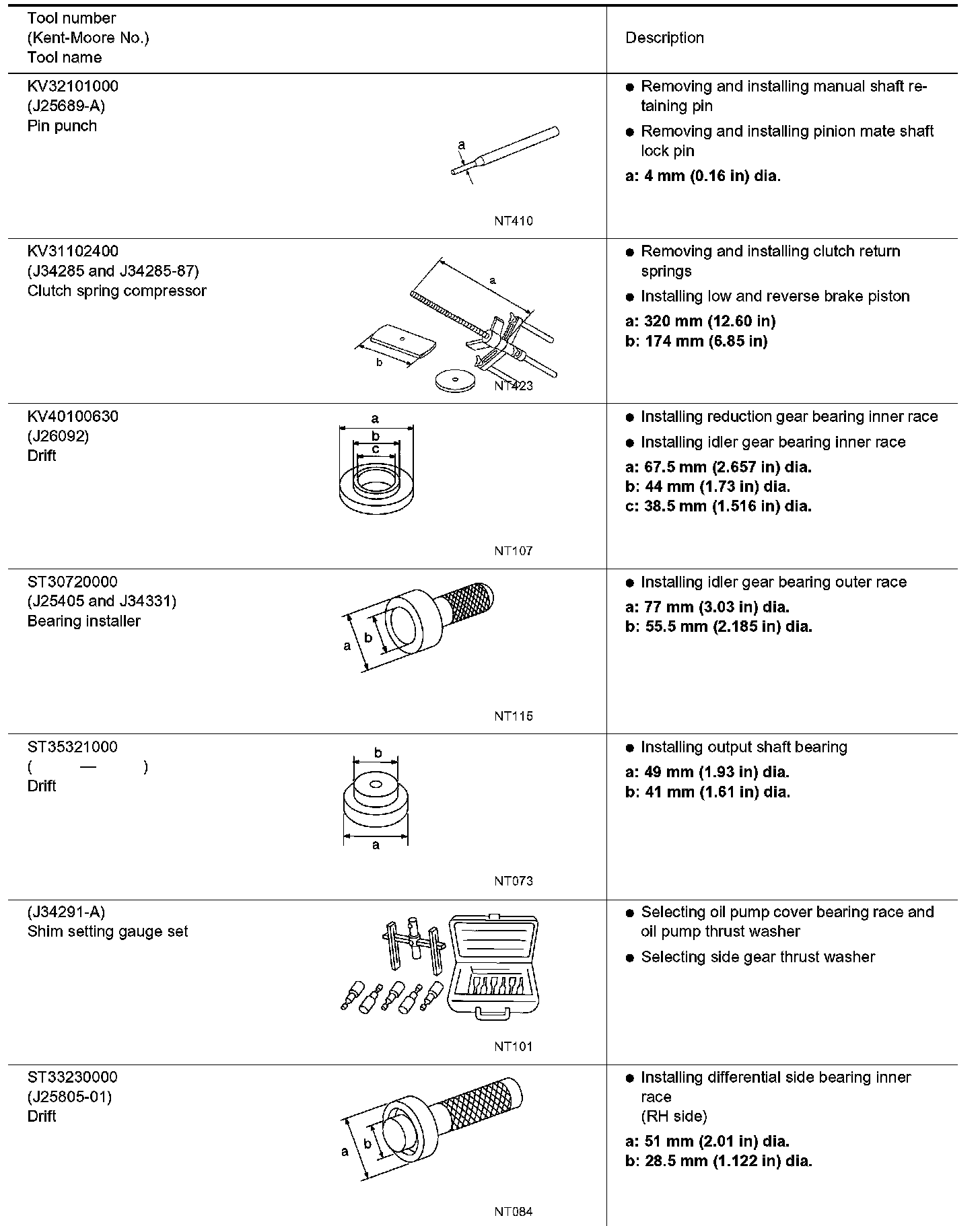 The actual shares of Kent-Moore tools may differ from those of special service tools illustrated here.