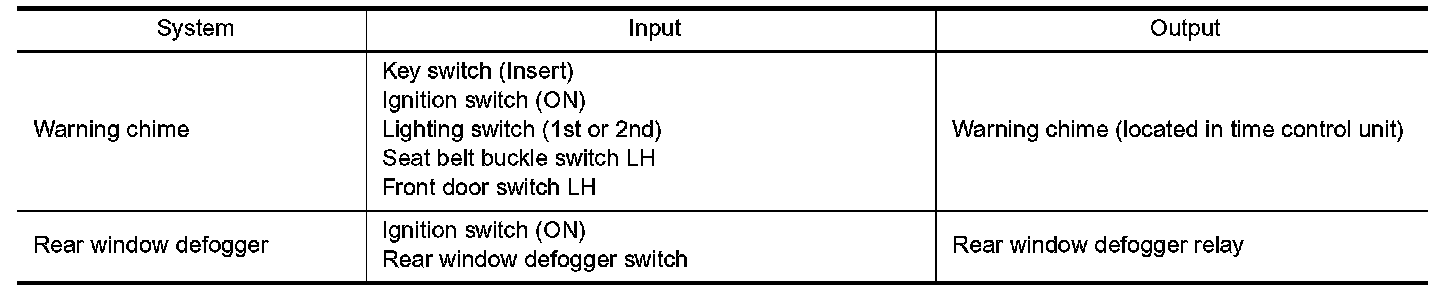 The time control unit totally controls the following body electrical system operations.