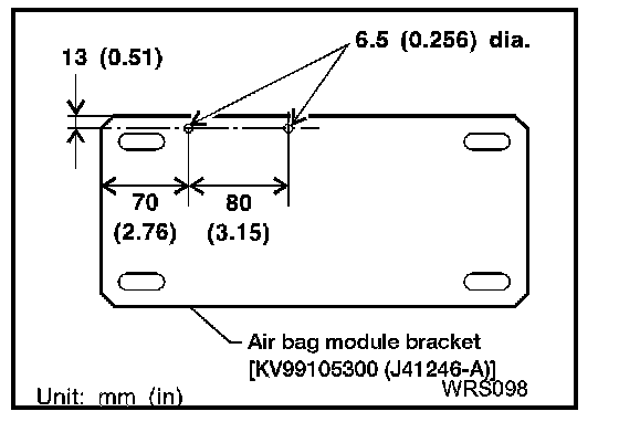 1. Make 6.5 mm (0.256 in) diameter holes air bag module bracket [SST: KV99105300 (J-41246-A)] at the position shown in figure.