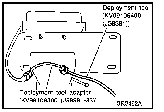 4. Connect deployment tool adapter [SST: KV99108300 (J38381-35)] to deployment tool [SST: KV99106400 (J38381)] connector and connector on air bag module.