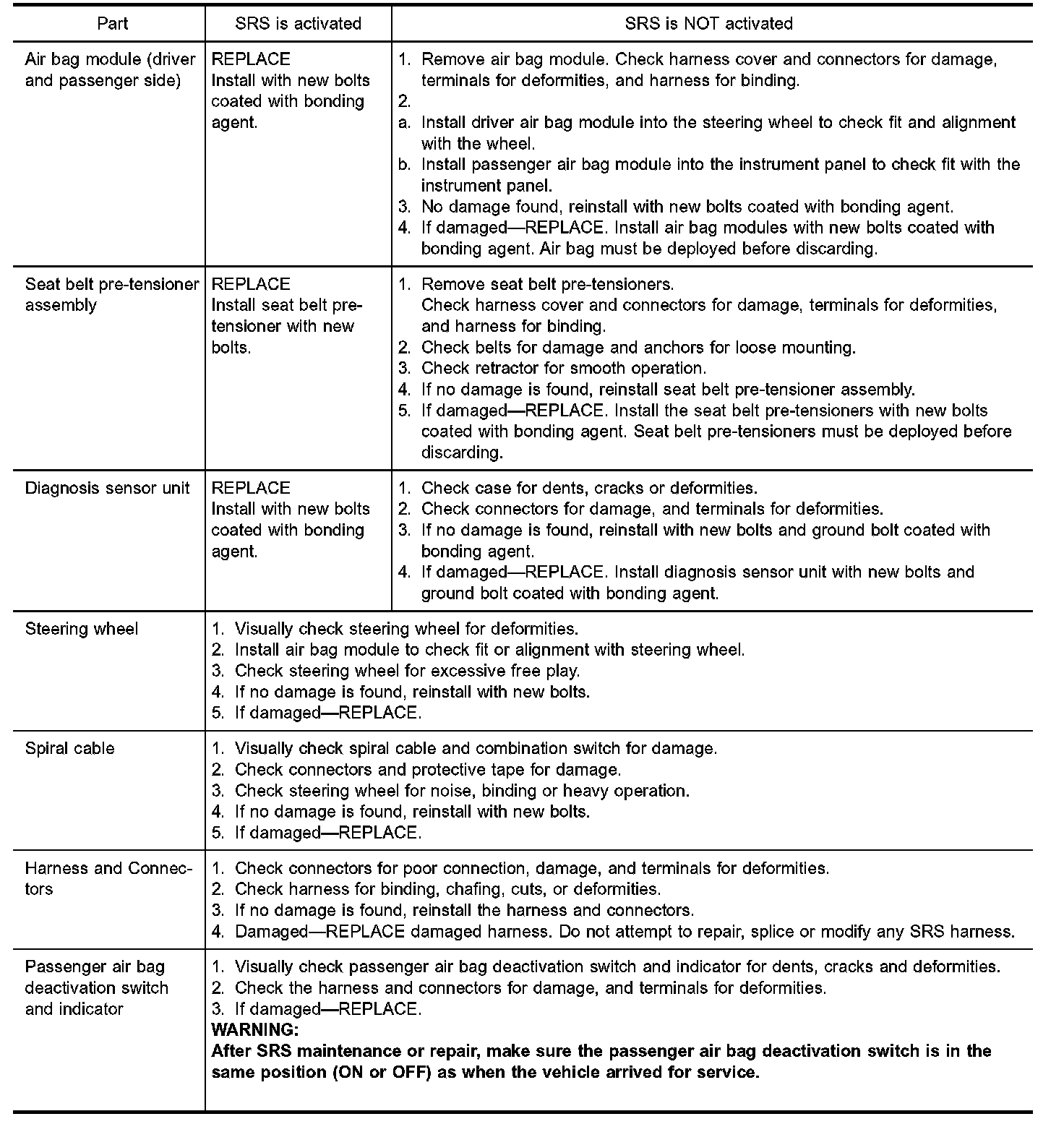 Replace any SRS components showing visible signs of damage (dents cracks and deformation).