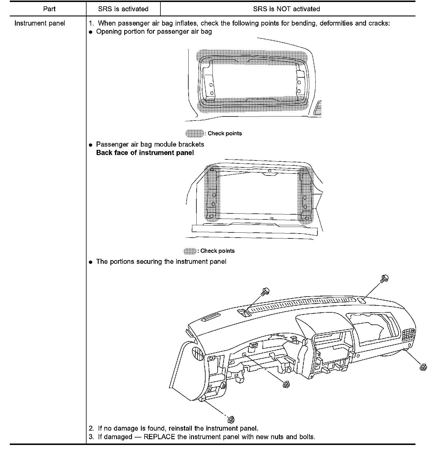Replace any SRS components showing visible signs of damage (dents, cracks and deformation).