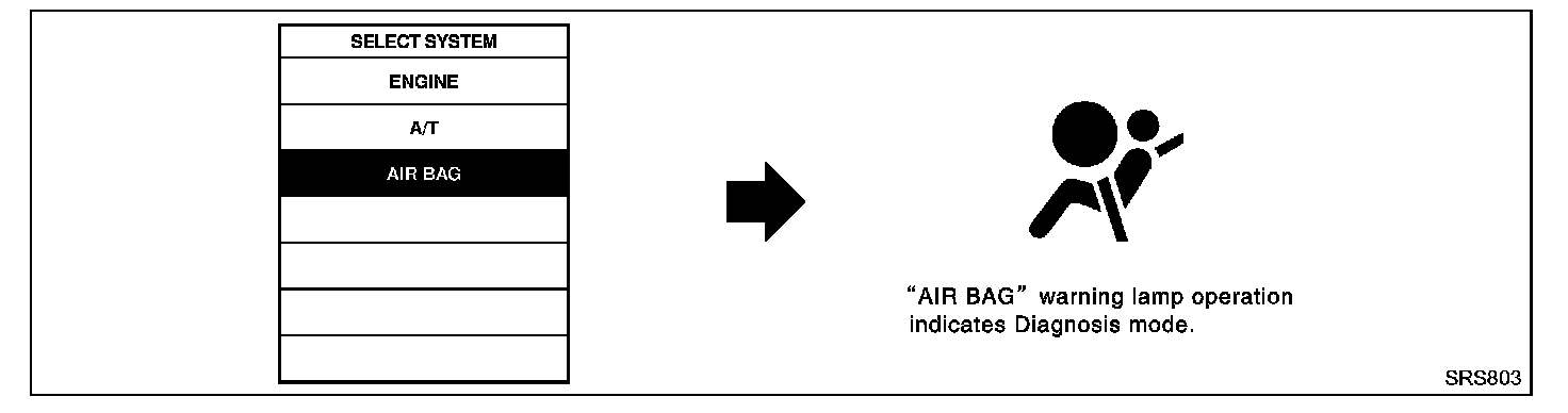 After selecting "AIR BAG" on the "SELECT SYSTEM" screen, User mode automatically changes to Diagnosis mode.