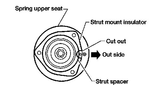 ^ Install upper spring seat with alignment mark facing the outer side of vehicle, in line with strut-to-knuckle attachment points.