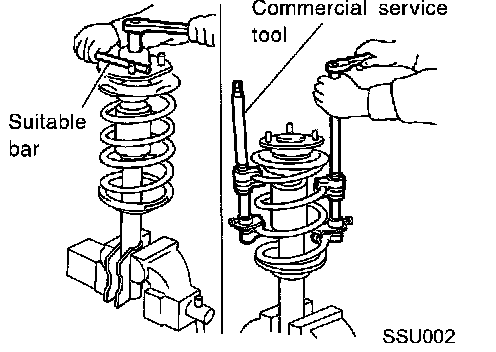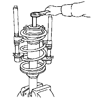 2. Compress spring with Tool so that shock absorber mounting insulator can be turned by hand.