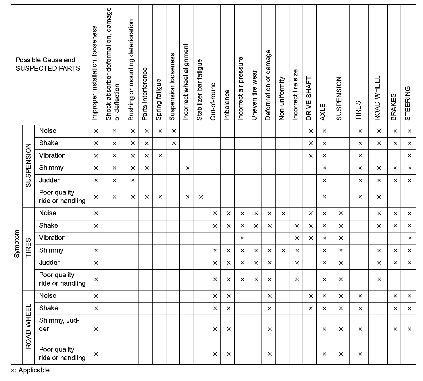 NVH Troubleshooting Chart