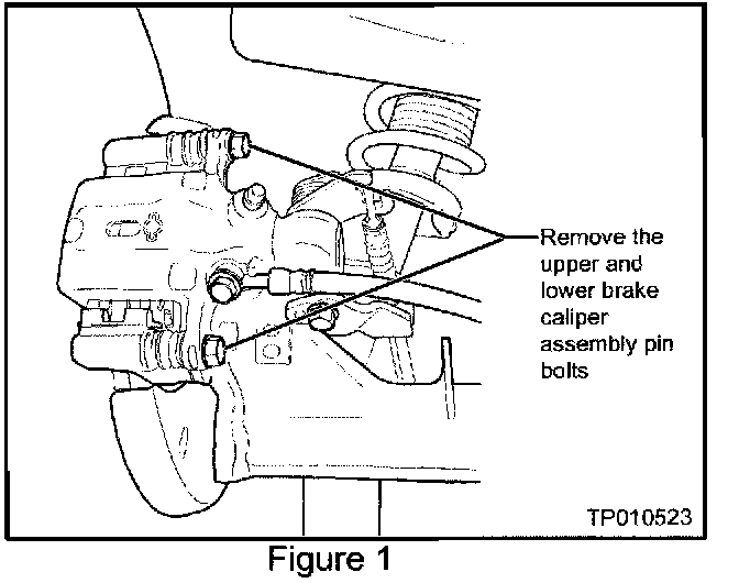 3. Remove the brake caliper assembly pin bolts (see Figure 1).