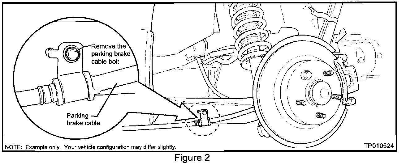 4. Loosen the parking brake cable by removing the parking brake cable bolt (see Figure 2).