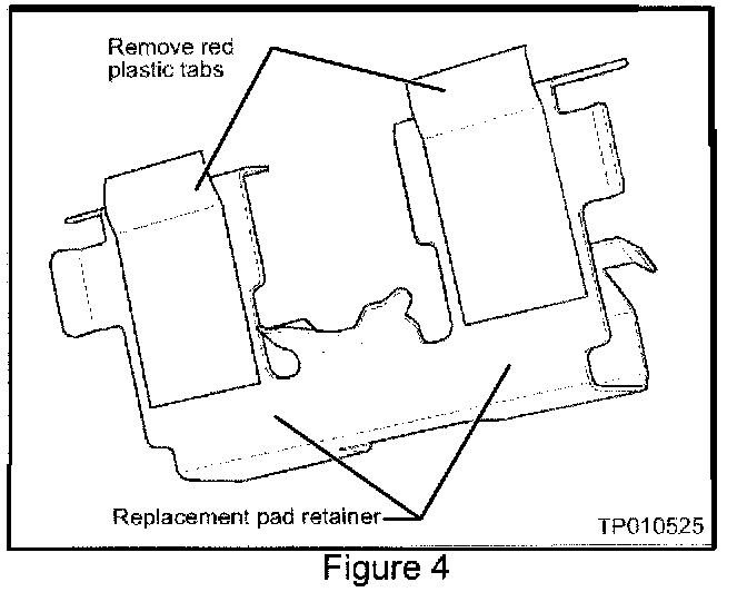 ^ First, remove the red plastic tabs from one of the replacement pad retainers in the SPR-RET kit (see Figure 4).