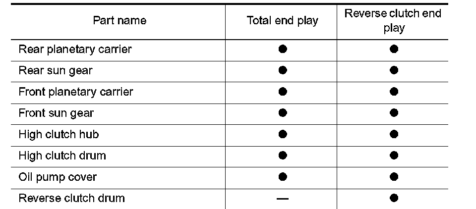 Adjustment (2)When any parts listed below are replaced, adjust total end play and reverse clutch end play.
