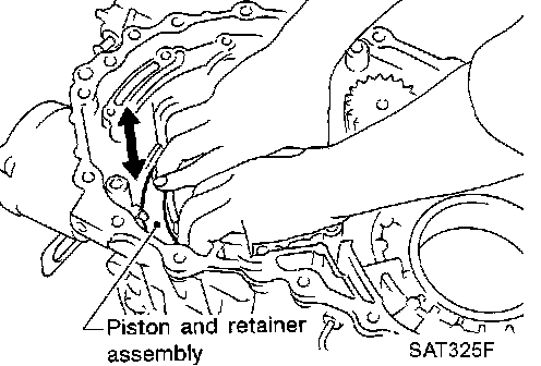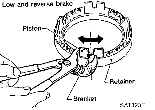 - If they can not move smoothly, remove piston and retainer assembly and align return spring correctly as instructed in step "a".