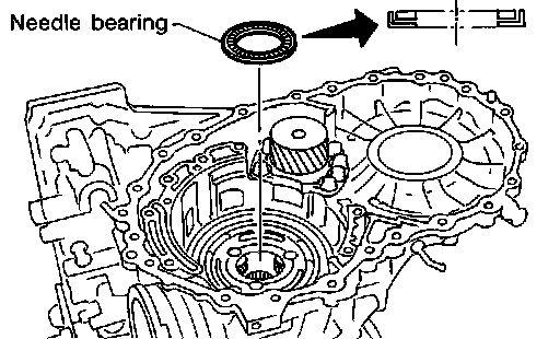 16. Install needle bearing on transmission case.