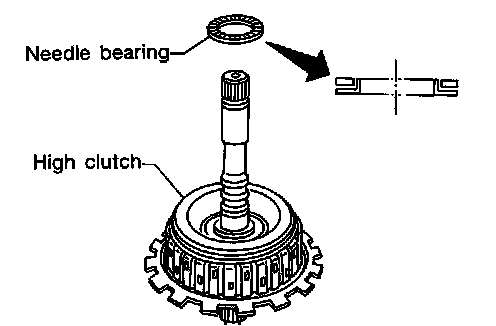 18. Install needle bearing and high clutch drum on high clutch hub.
