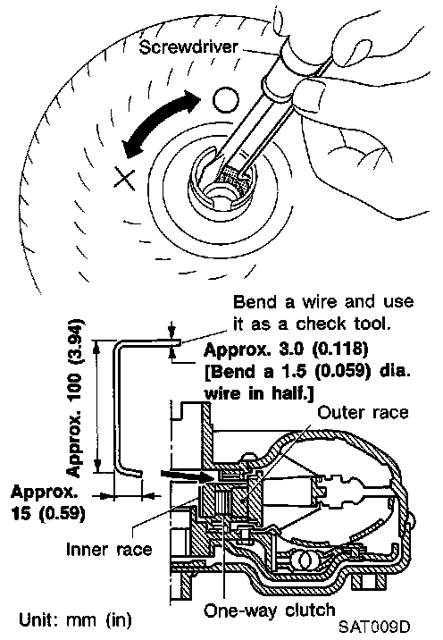 a. Insert check tool into the groove of bearing support built into one-way clutch outer race.