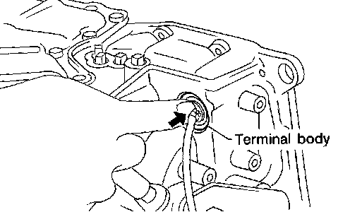 c. Push terminal body into transmission case and draw out solenoid harness.