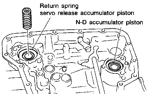 11. Remove return spring from servo release accumulator piston.