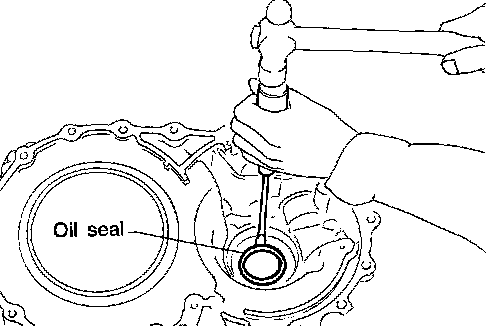 46. Remove side oil seal with screwdriver from transmission case.