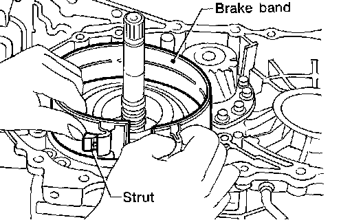 b. Remove brake band and strut from transmission case.