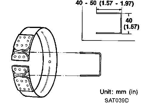 c. Check brake band facing for damage, cracks, wear or burns.