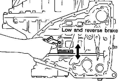 31. Apply compressed air and check to see that low and reverse brake operates.