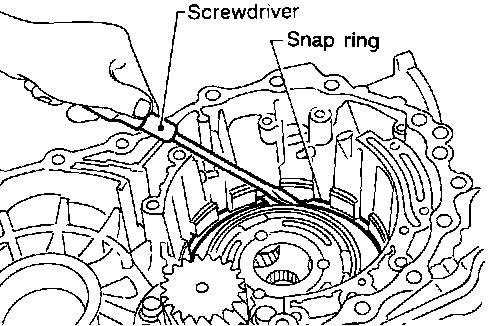 c. Remove snap ring with flat-bladed screwdriver.