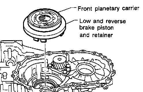 d. Remove front planetary carrier with low and reverse brake piston and retainer.
