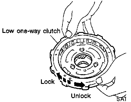 f. Check that low one-way clutch rotates in the direction of the arrow and locks in the opposite direction.