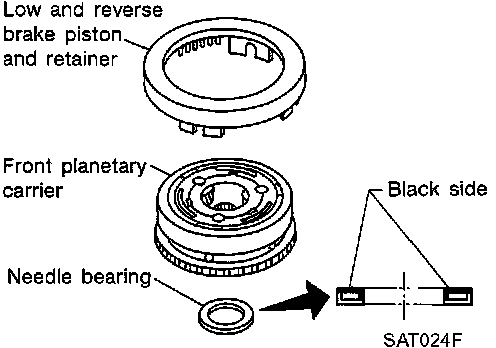 g. Remove needle bearing, low and reverse brake piston and retainer from front planetary carrier.
