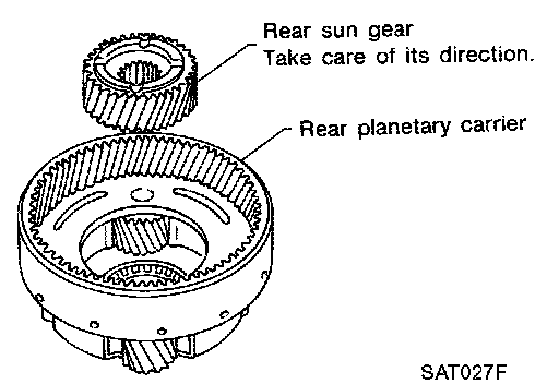d. Check rear planetary carrier, rear sun gear and needle bearings for damage or wear.