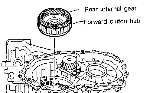 34. Remove rear internal gear and forward clutch hub from transmission case.
