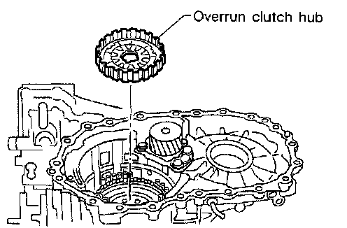 35. Remove overrun clutch hub from transmission case.