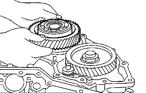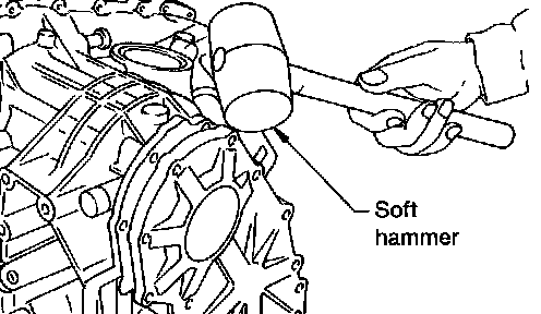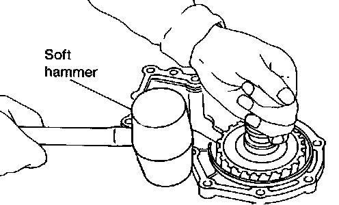 - If output shaft assembly came off with side cover, tap cover with a soft hammer to separate.