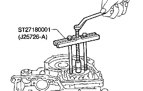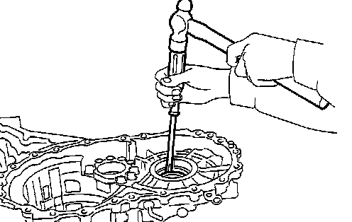 24. Remove differential side bearing outer race from converter housing.