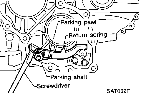 41. Remove return spring from parking shaft with screwdriver.
