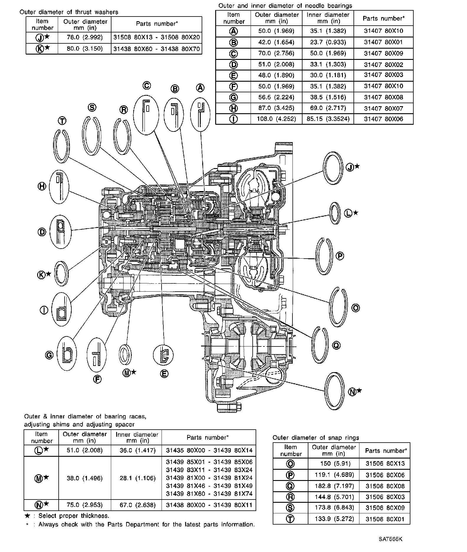 Locations of Adjusting Shims, Needle Bearings, Thrust Washers and Snap Rings