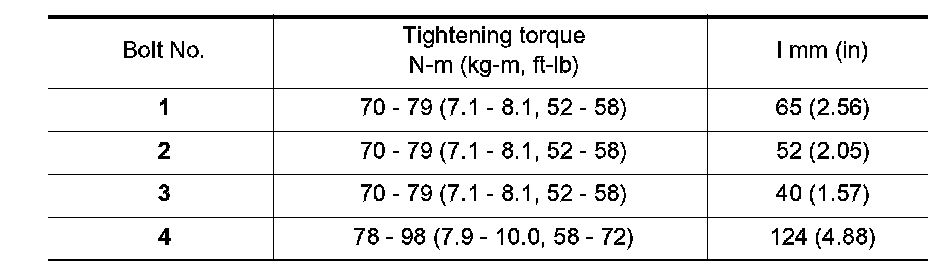 - Tighten center member bolts to the specified torque.