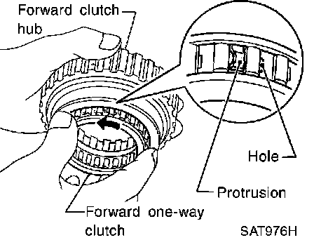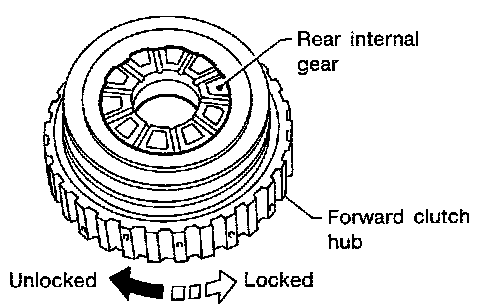 - Check operation of forward one-way clutch. Hold rear internal gear and turn forward clutch hub. Check forward clutch hub for correct locking and unlocking directions.