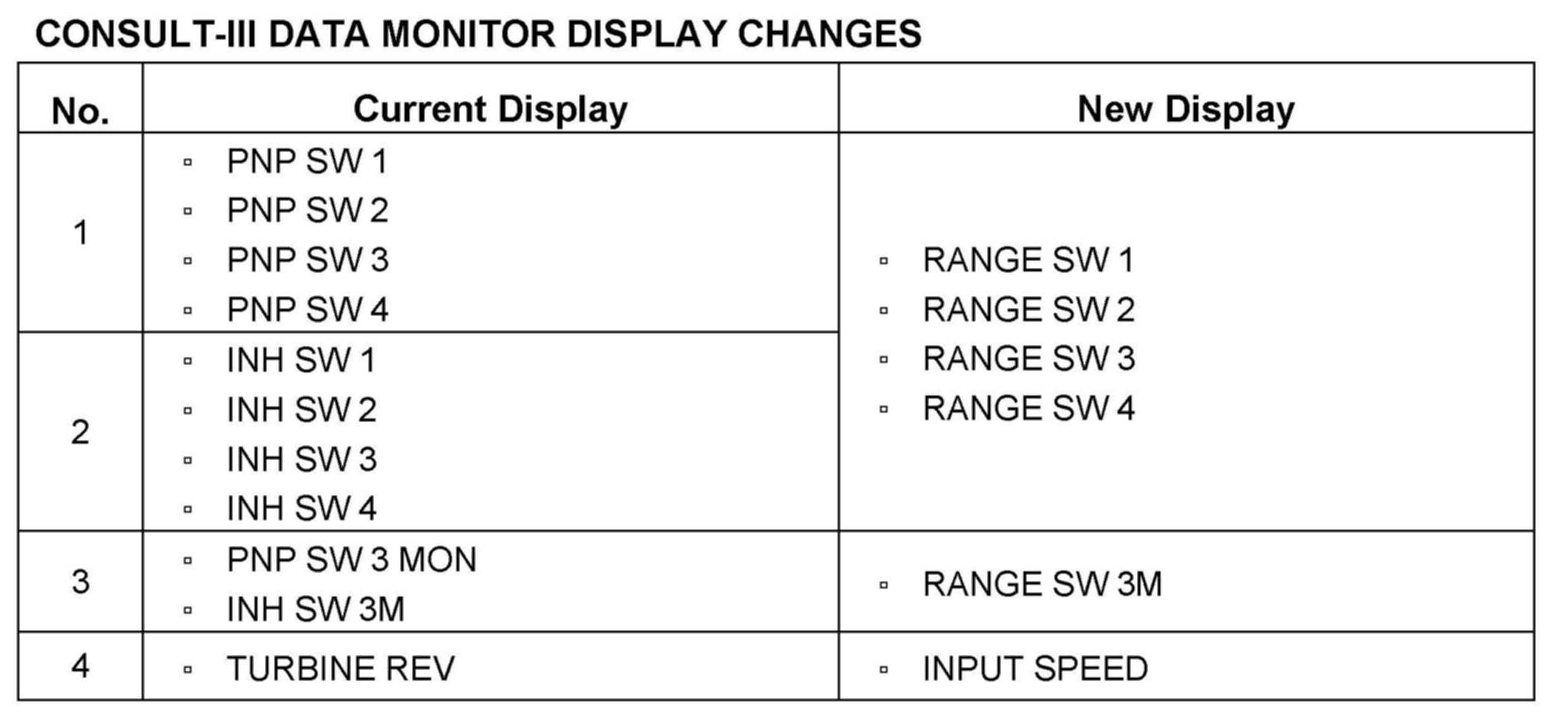 CONSULT-III DATA MONITOR DISPLAY CHANGES