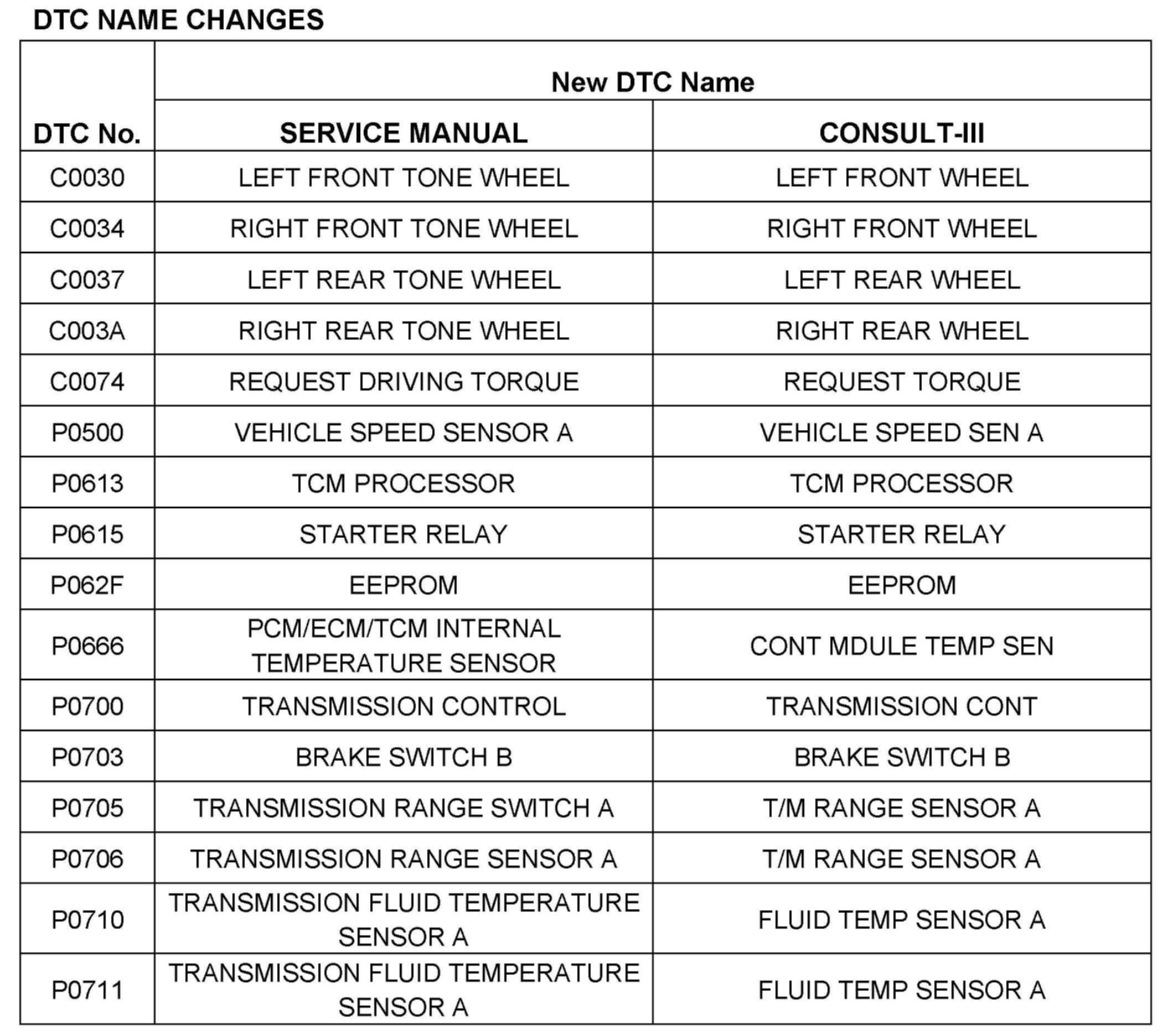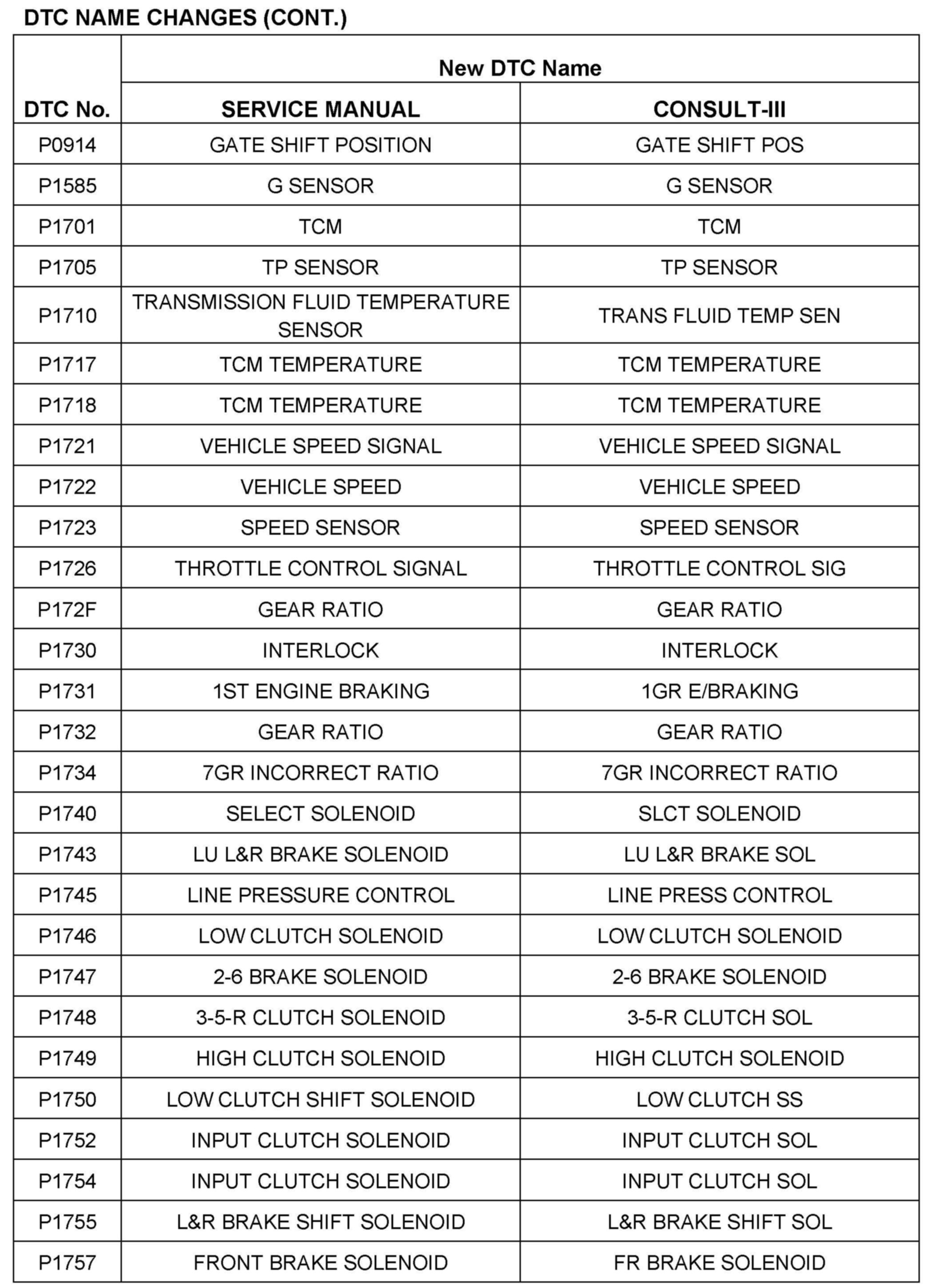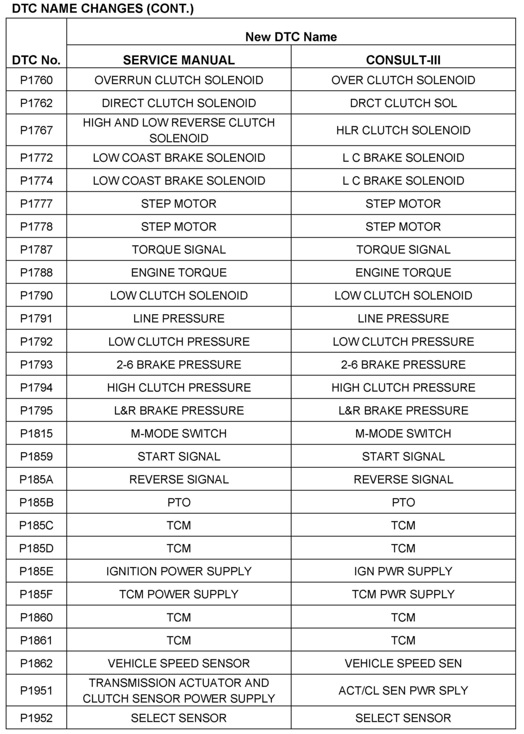 The terminology for Automatic Transmission ("AT") and Continuously Variable Transmission ("CVT") in the Nissan Service Manuals is being updated to reflect the terminology in SAE J1930 and J2012.