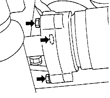 ^ Insert screwdriver into transaxle opening for right drive shaft and strike with a hammer.