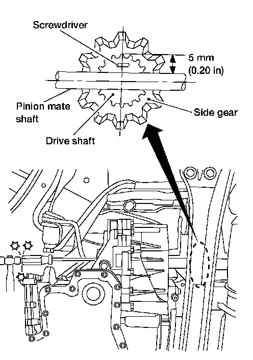 5. After its insertion, try to pull the flange out of the slide joint by hand. If it pulls out, the circular clip is not properly meshed with the side gear.