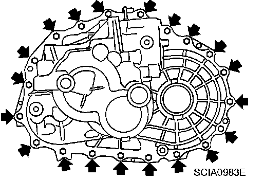 c. Apply sealant to mating surfaces of transaxle case and clutch housing. Use Genuine Anaerobic Liquid Gasket or equivalent.