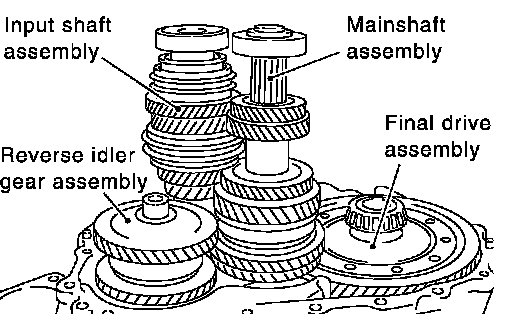 8. Install input shaft assembly, mainshaft assembly, and reverse idler gear assembly into clutch housing.