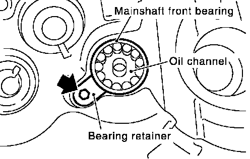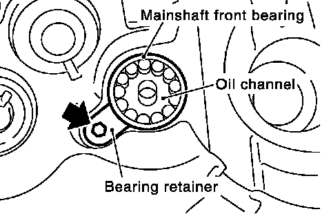 28. Remove bearing retainer and then the mainshaft front bearing.